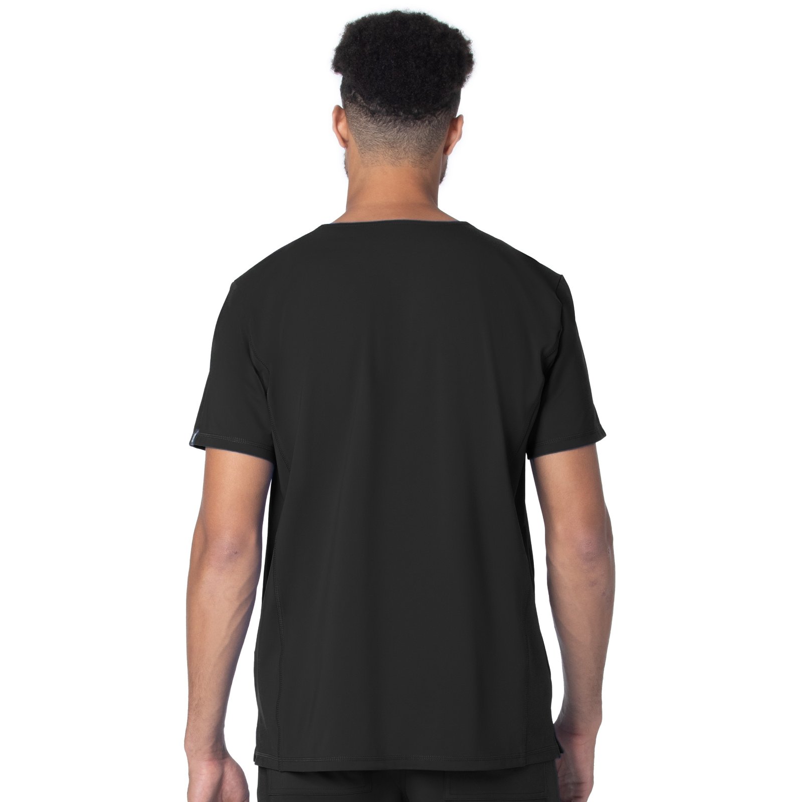 La camiseta sanitaria con cuello en V para hombre de la colección Urbane Impulse cuenta con aberturas laterales para mayor comodidad y libertad de movimiento.